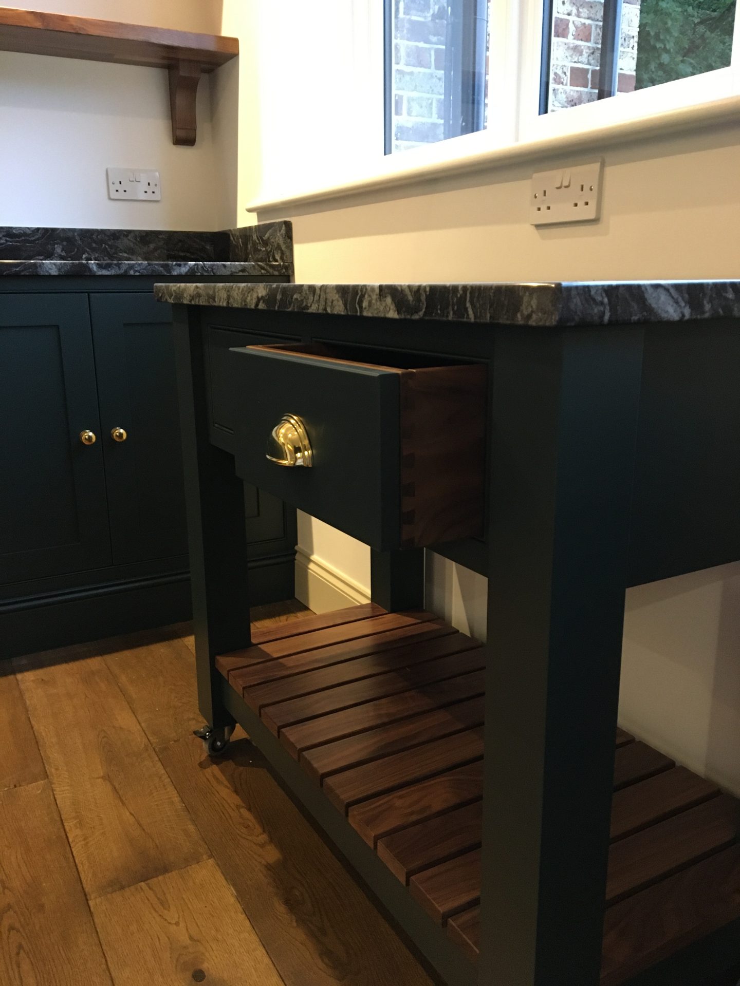 Doors: Tulipwood shaker doors mixed with walnut drawers and shelving