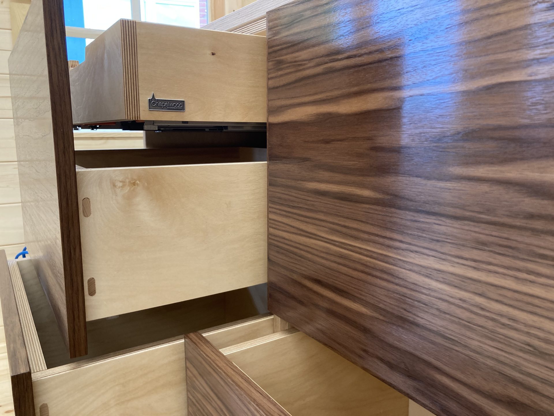 A sleek, contemporary kitchen crafted in rich walnut, combining natural warmth with modern precision.